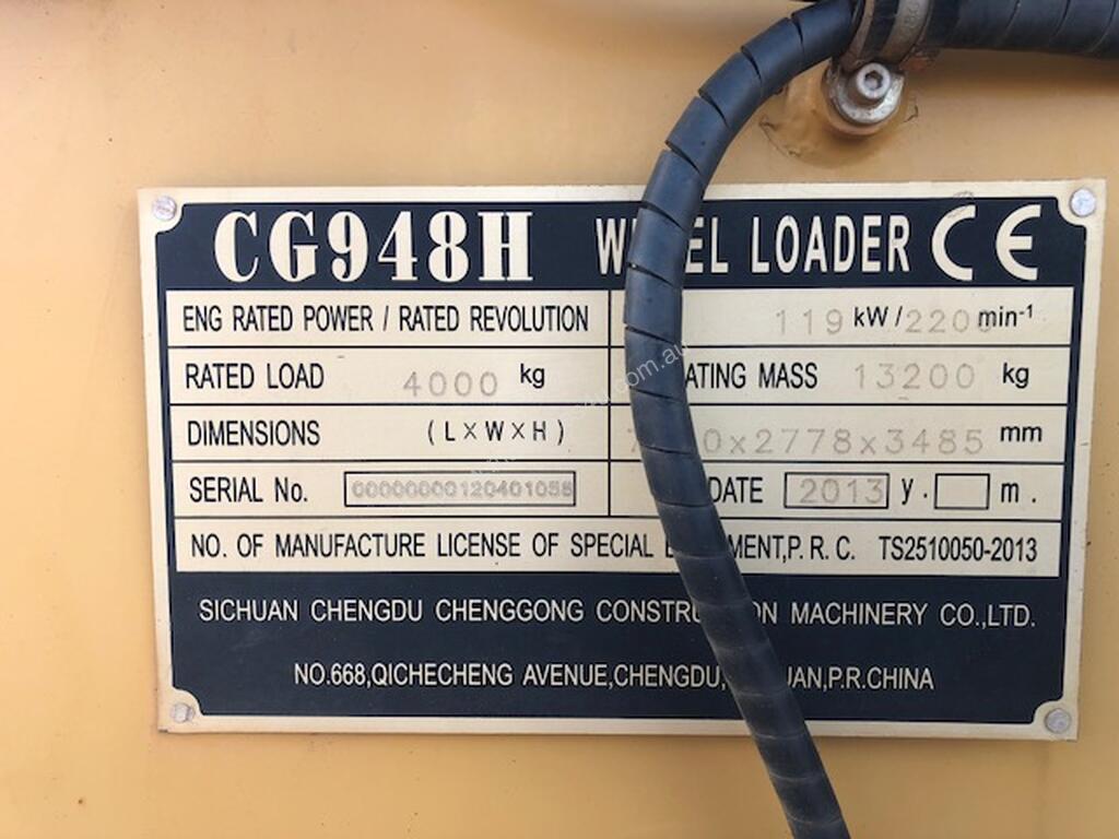 2013 Chenggong 948H Loader : $55,000 AUD ($60,500 Inc. GST)